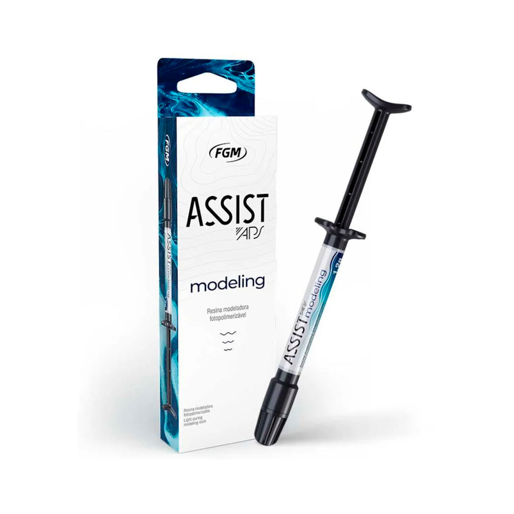 Assist Modeling APS es una resina modeladora fotopolimerizable diseñada para facilitar la manipulación de composites en restauraciones directas e indirectas. Su Tecnología APS garantiza estabilidad y polimerización confiable, permitiendo un control superior en la escultura y adaptación del material restaurador sin alterar sus propiedades ópticas ni mecánicas.